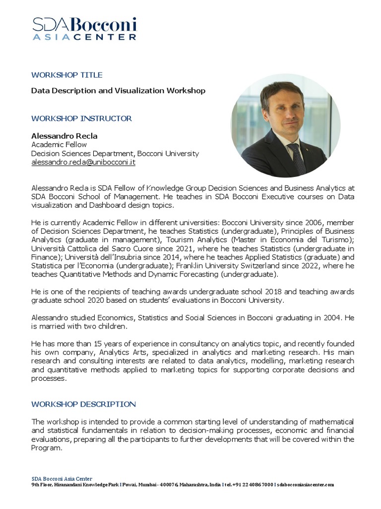 SDA Bocconi School of Management. He teaches in SDA Bocconi Executive courses on Data