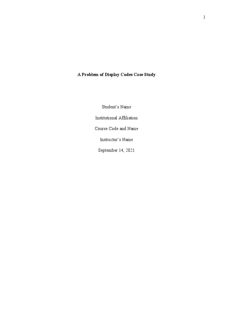 Pasupathy, 2018). The main problem outlined in the case study is figuring out the standard codes