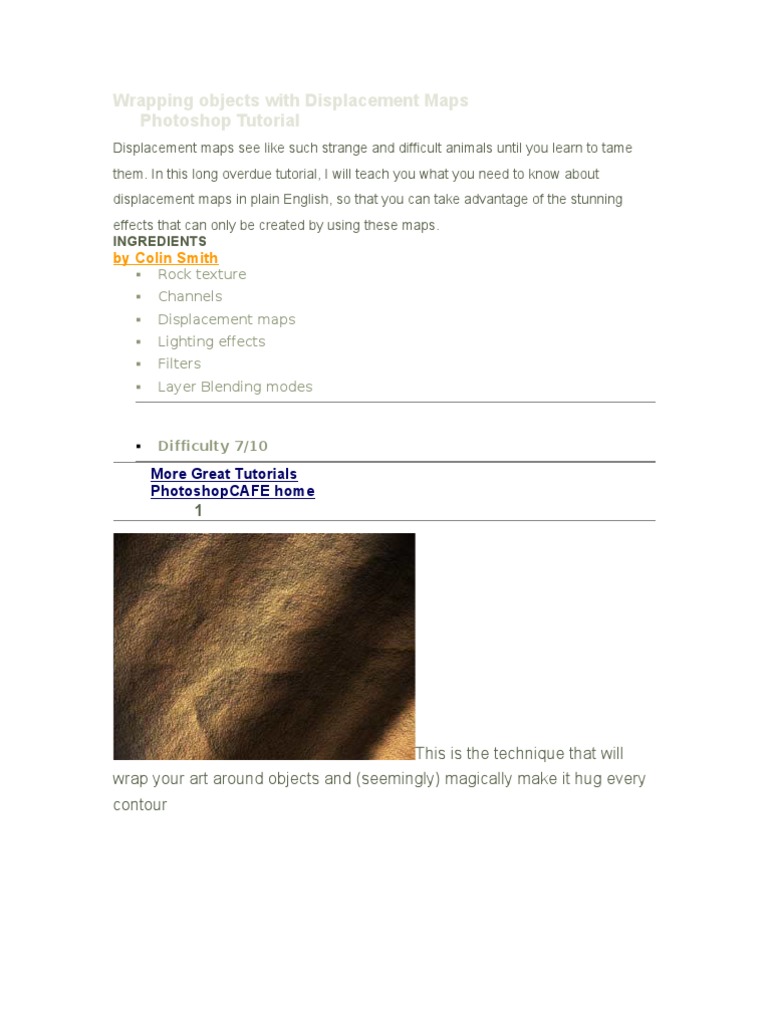 Displacement maps see like such strange and difficult animals until you learn to tame them. In this long overdue tutorial, I will teach you what you need to know about displacement maps in plain English, so that you can take advantage of the stunning effects that can only be created by using these maps. INGREDIENTS