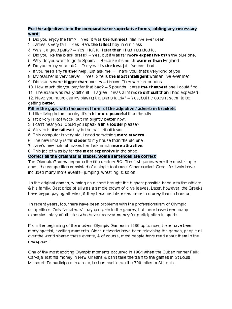 Put the adjectives into the comparative or superlative forms, adding any necessary