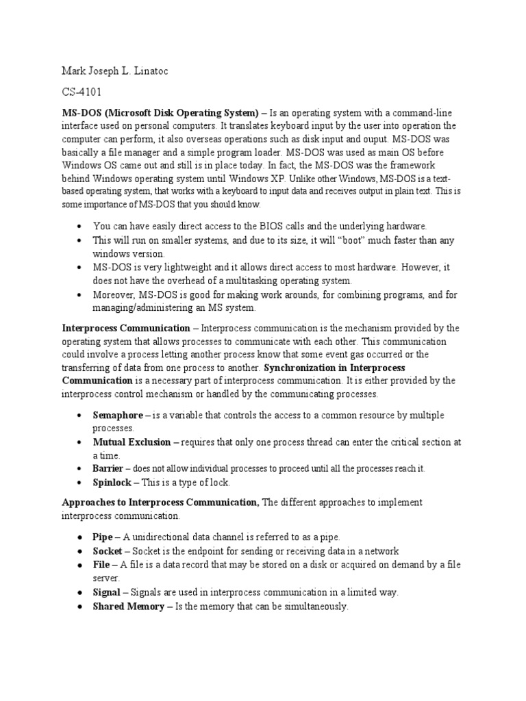 MS-DOS (Microsoft Disk Operating System) – Is an operating system with a command-line