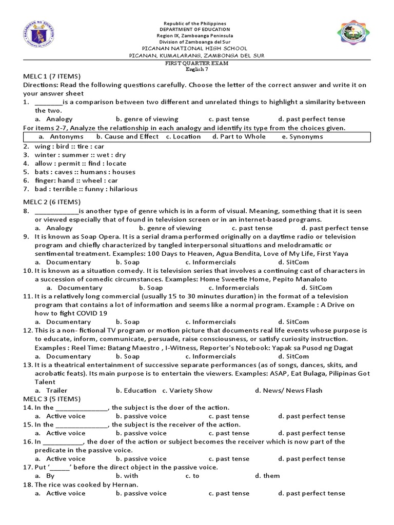 a. Analogy b. genre of viewing c. simple past tense d. past perfect tense