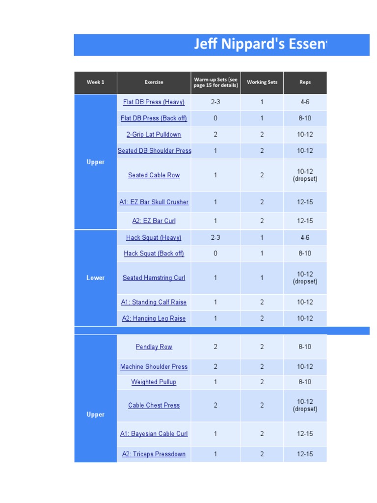 Week 1 Exercise Warm-up Sets (see Working Sets Reps