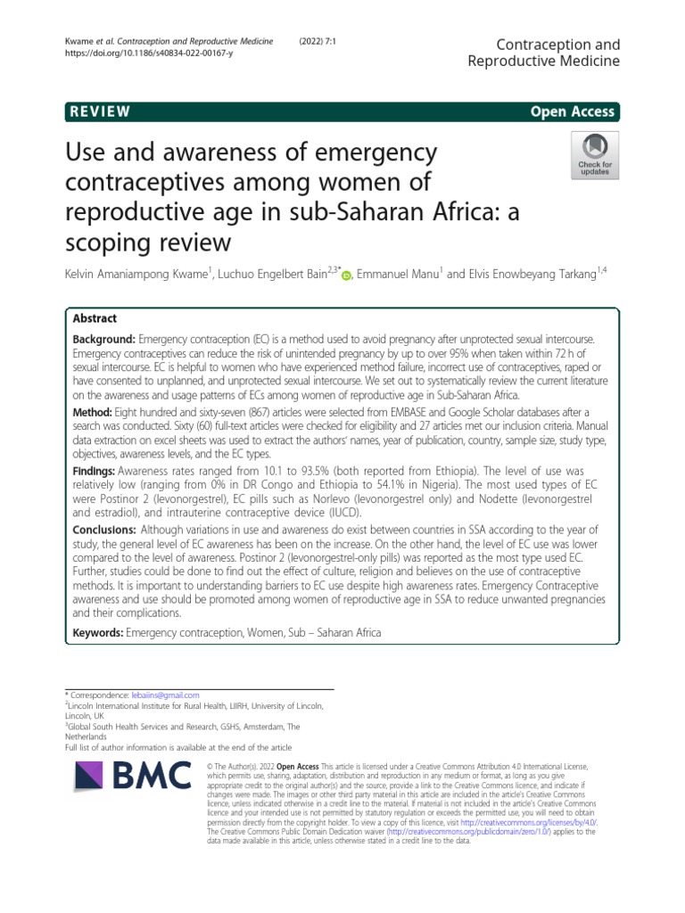 Kwame et al. Contraception and Reproductive Medicine (2022) 7:1 Page 2 of 14