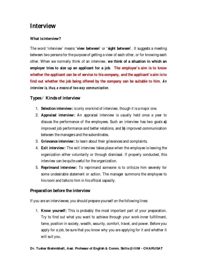 1. Selection interview: is only one kind of interview, though it is a major one.