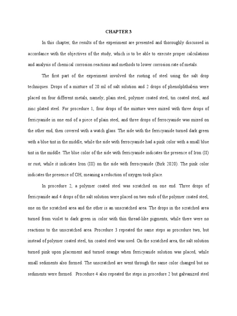 and analysis of chemical corrosion reactions and methods to lower corrosion rate of metals.