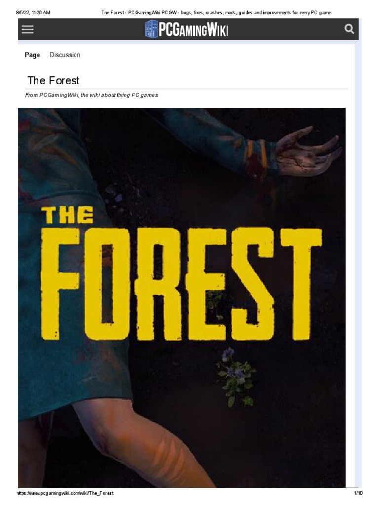 8/5/22, 11:26 AM The Forest - PCGamingWiki PCGW - bugs, fixes, crashes, mods, guides and improvements for every
