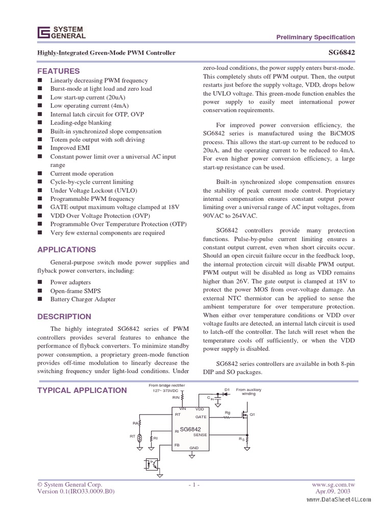 The SG6842 family of controllers is distinguished for its protection features and burst-mode functionality.
