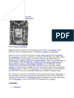 Like the short stocy, it is difficult to define a novel. When we talk about a .novel, we usually mean a piece of fiction, written in prose and of a c e r t h length. A novel is an individual vision of the novelist. It is a picture of life as viewed by the writer. It has a story which.tells us what happened and a plqt which tells us how it happened:E.M. Forster, an English novelist, said this of the difference between a story and a plot: 'The King died and the Queen died' is a stary. 'The King died and then the Queen died of grief is a plot. The differen& is quite clear from this example, in the sense that there is a cause', and effect situation. The plot and characters in a good novel leave a lasting. impression on the reader. A good novel gives us an ins'ight into the world and ourselves; it is full of vitality'and-humdnity and appealstto human sensibilities. The stfle varieh from oie novelist to another. Each novel bears the dgnature'of thk novelist. A good short story.is like a small garden. A fine novel is like a forest. We will discuss.the characteristics and types of novels in Block 5 , Unit 17. ., 1.4.3 ; ~ 6 6t & , ~ i t t k rTravelogue ' ; .. * An essay i's' a piece ,of prose composition usually of moderate length:-The word 'kssay' derives from theFrench word essai or attempt. It "attempts" to thrqw sonie light on the subject.Qnder discussion.