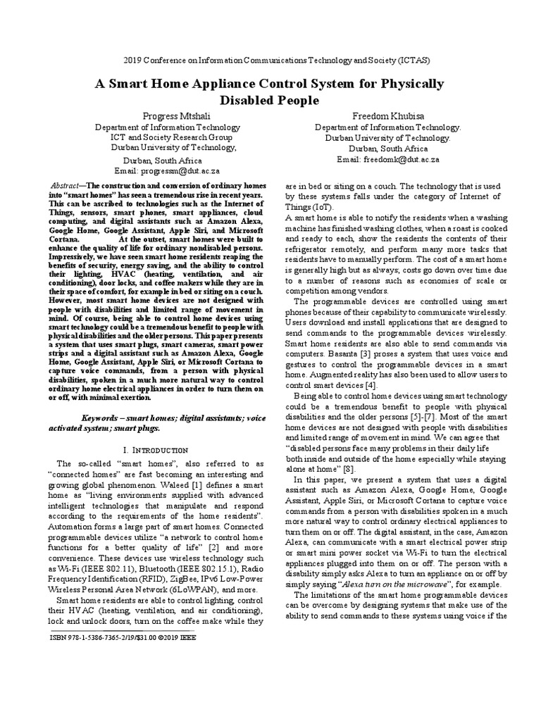 Keywords – smart homes; digital assistants; voice disabilities and the older persons [5]-[7]. Most of the smart