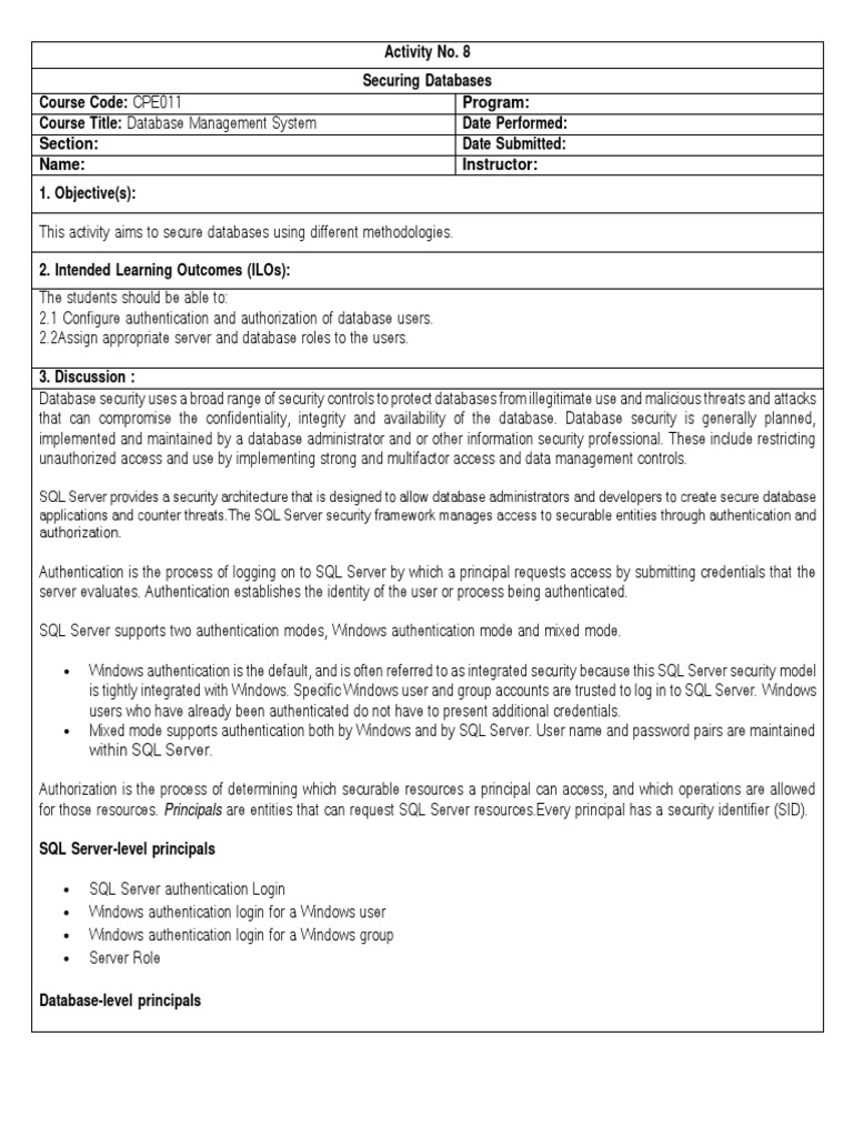 for those resources. Principals are entities that can request SQL Server resources.Every principal has a security identifier (SID).