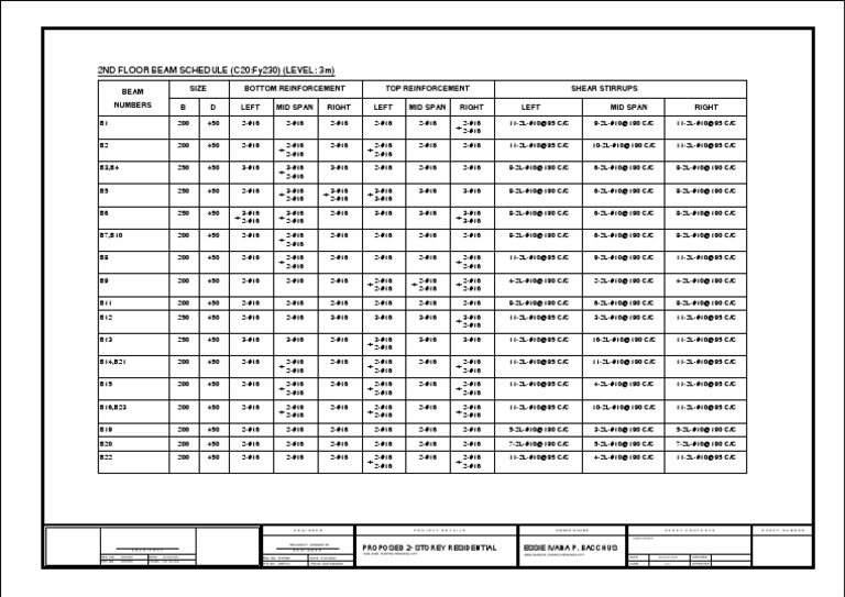 2ND FLOOR BEAM SCHEDULE (C20:Fy230) (LEVEL: 3m)