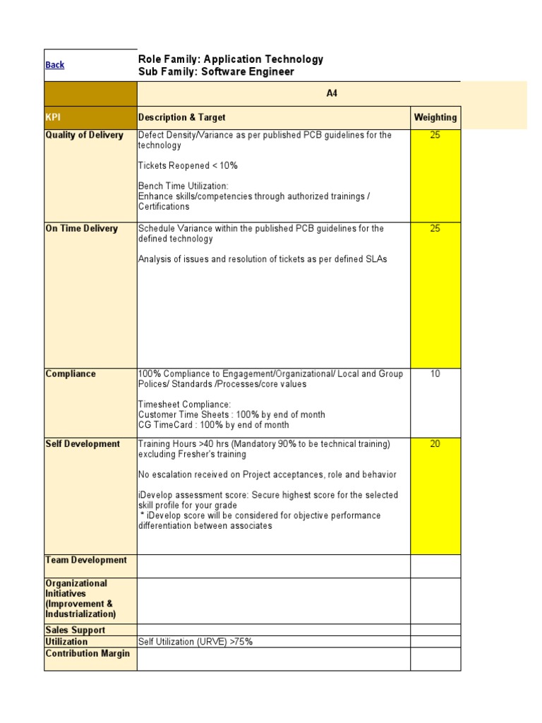Self Development Training Hours >40 hrs (Mandatory 90% to be technical training) 20