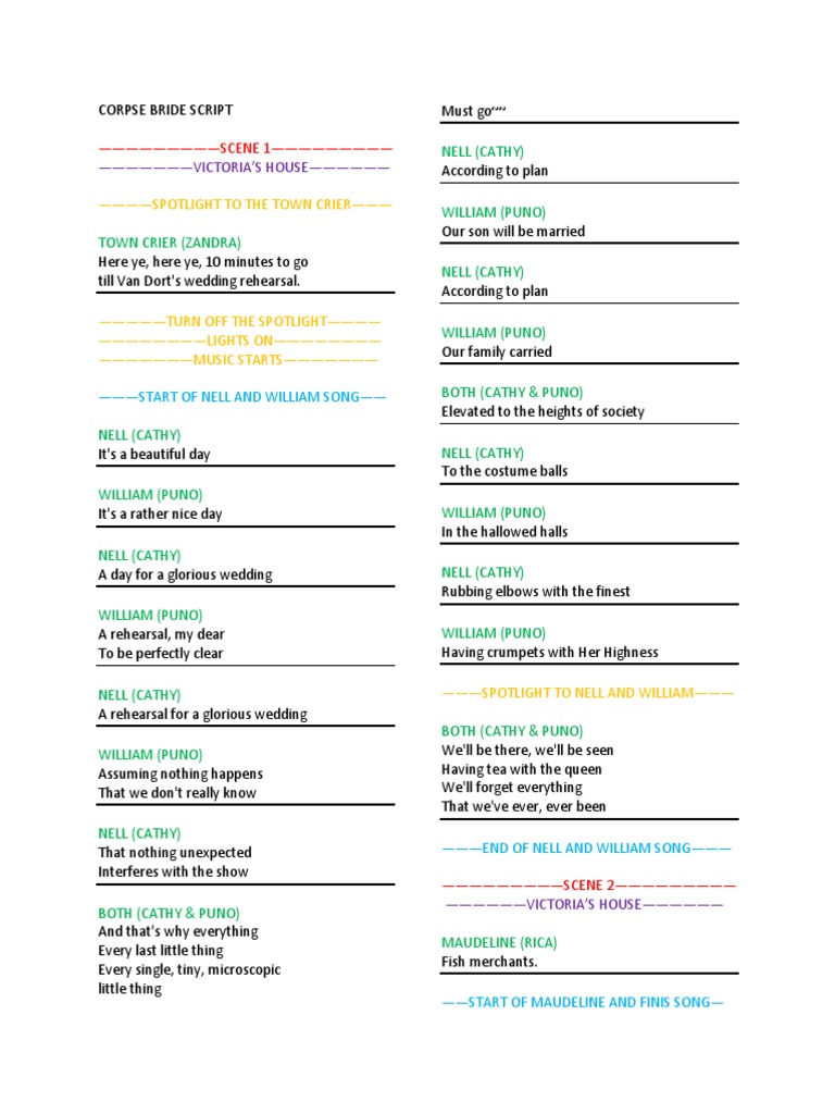 CORPSE BRIDE SCRIPT Must go~~