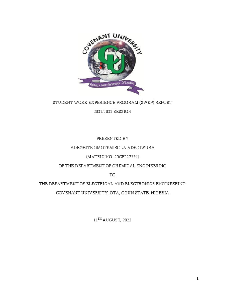 Adegbite Omotemisola Adediwura at the Electrical and Electronics department of Covenant