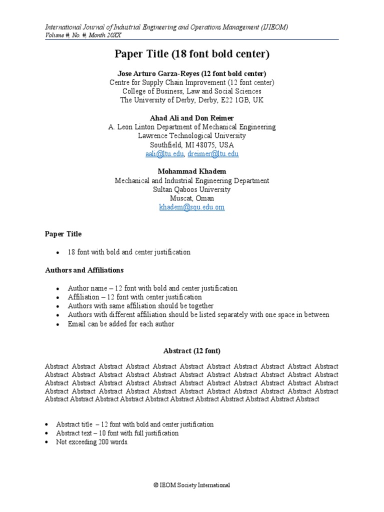 International Journal of Industrial Engineering and Operations Management (IJIEOM)