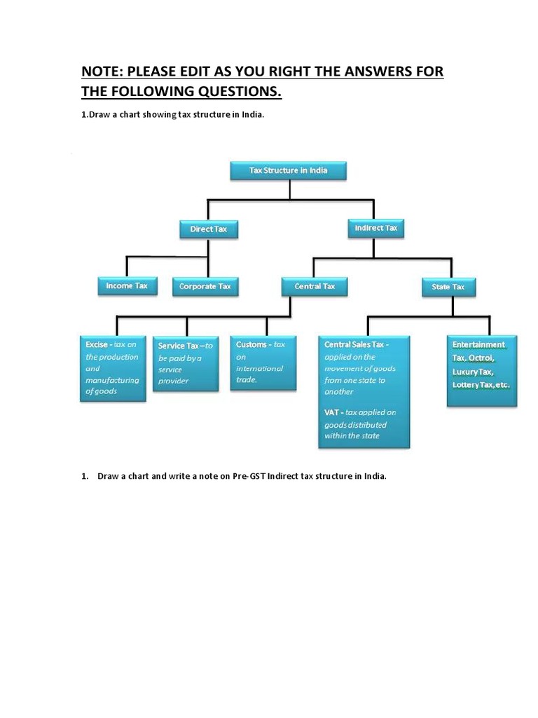 1. Draw a chart and write a note on Pre-GST Indirect tax structure in India.