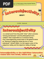 Intersubjectivity refers to the sharing of subjective states between two or more individuals. It is the union of personal subjective reality with the objective reality shared between individuals. Intersubjectivity involves placing oneself in another's perspective and relating to others in a positive way. Philosophers like Confucius, Martin Buber, and Karol Wojtyla discussed intersubjectivity and emphasized treating others as equals through actions, mutual understanding in relationships, and participating with others in community.