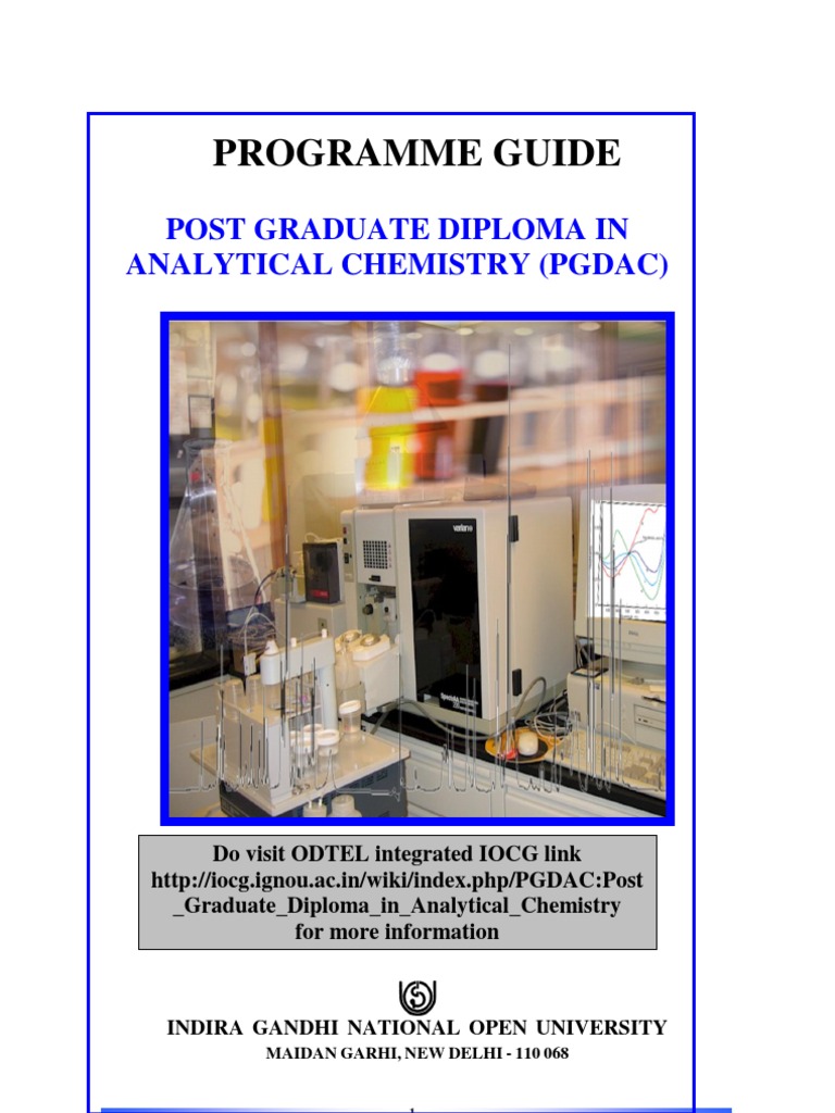 Do visit ODTEL integrated IOCG link http://iocg.ignou.ac.in/wiki/index.php/PGDAC:Post _Graduate_Diploma_in_Analytical_Chemistry for more information