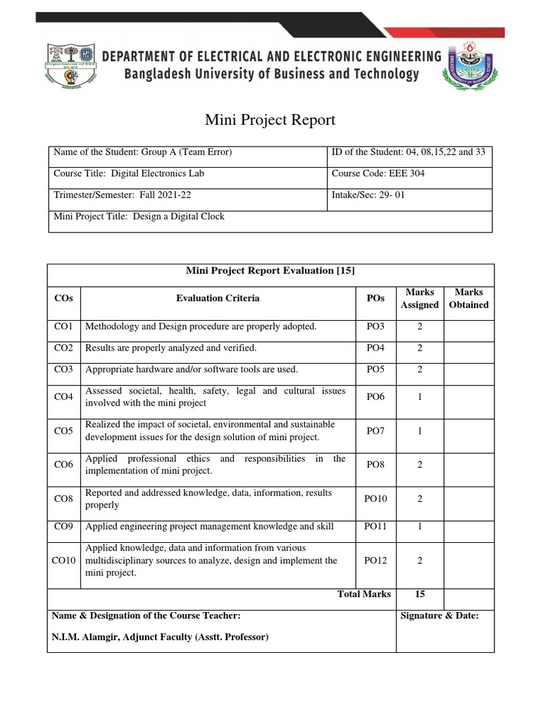 Course Title: Digital Electronics Lab Course Code: EEE 304