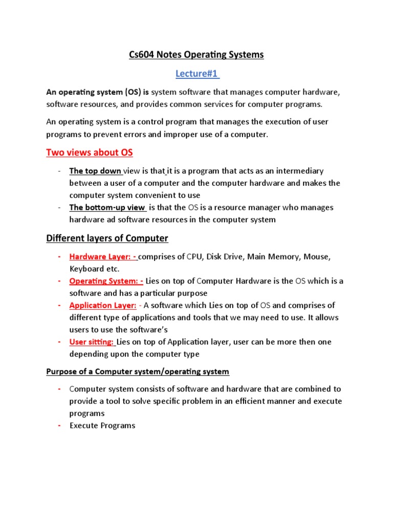Cs604 Notes Operating Systems