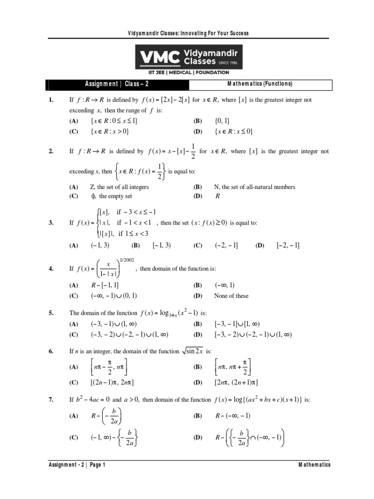 1. If f : R R is defined by f ( x) [2 x] 2[ x] for x R, where [ x] is the greatest integer not