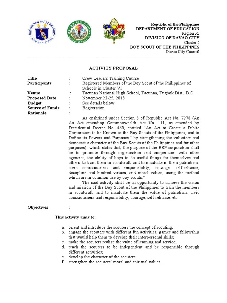 Participants : Registered Members of the Boy Scout of the Philippines of