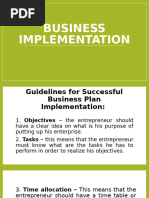 implementation. This is the portion of the business plan where objectives are clarified, tasks are assigned with