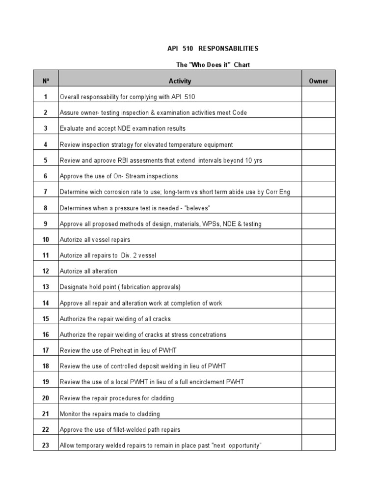 9 Approve all proposed methods of design, materials, WPSs, NDE & testing