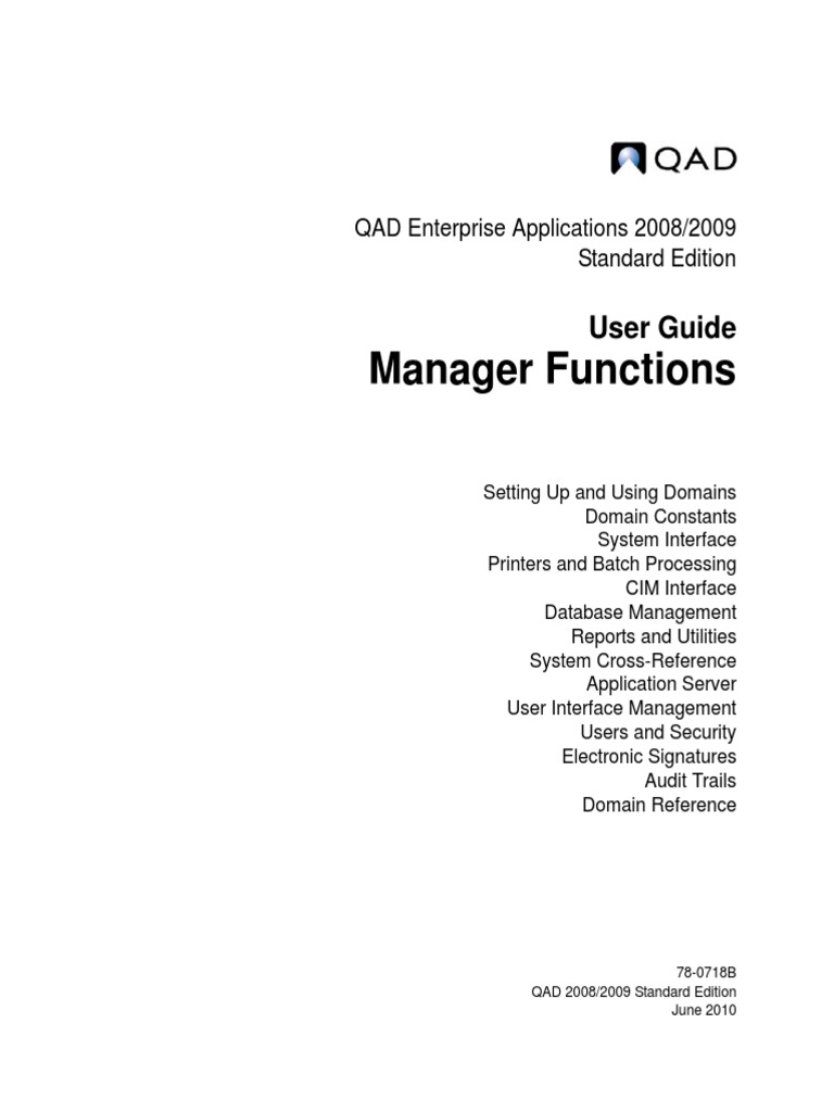 QAD and MFG/PRO are registered trademarks of QAD Inc. The QAD logo is a trademark of