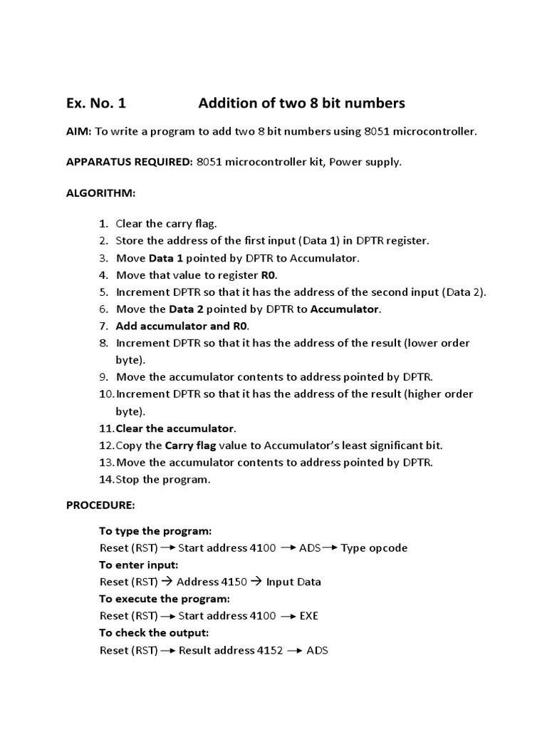 APPARATUS REQUIRED: 8051 microcontroller kit, Power supply.