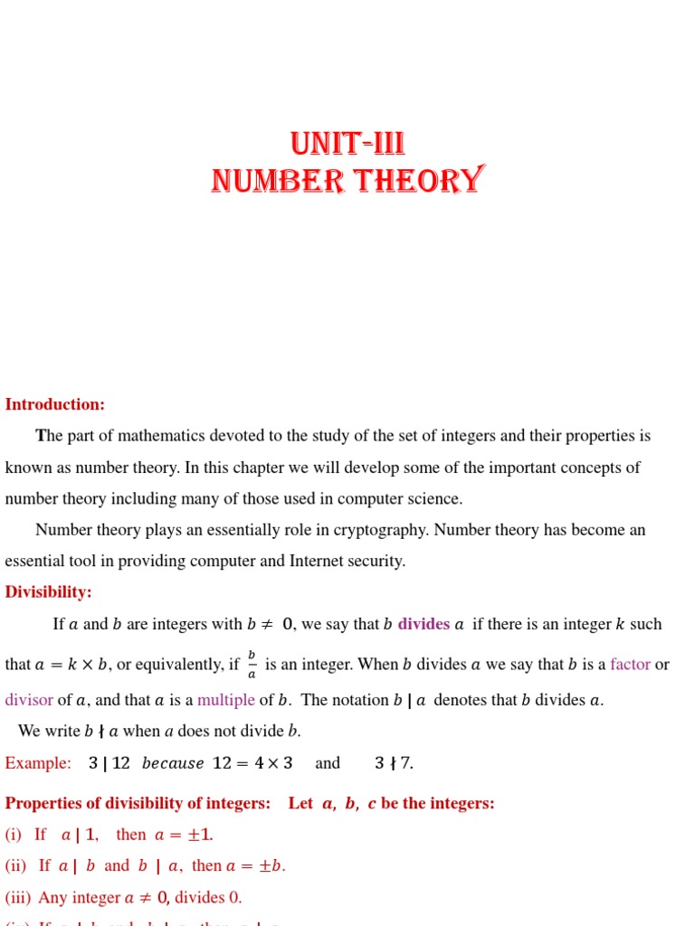 divisor of 𝑎, and that 𝑎 is a multiple of 𝑏. The notation 𝑏 | 𝑎 denotes that 𝑏 divides 𝑎.