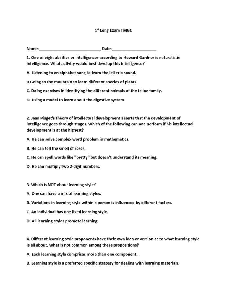 1. One of eight abilities or intelligences according to Howard Gardner is naturalistic