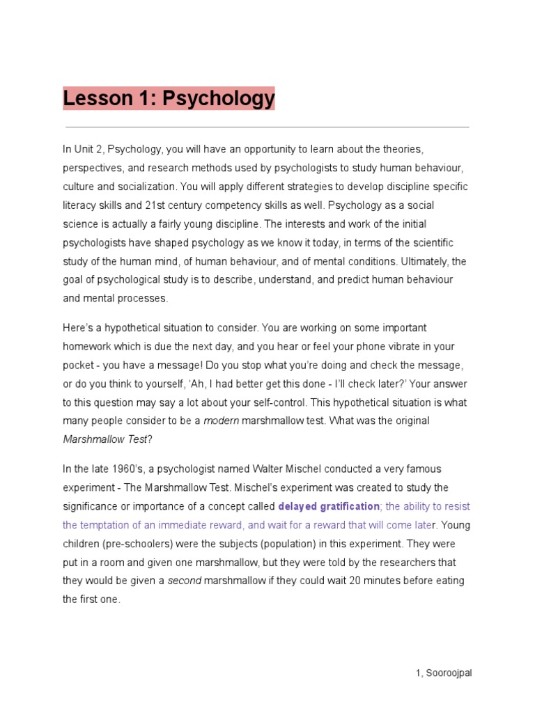 Activity #1A: Watch This video that describes Mischel’s Marshmallow Test, and his