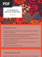 language, second language or a foreign language. Because ESP courses are taken to develop