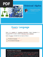 • Relational algebra is a procedural query language, which takes instances of relations as input and yields