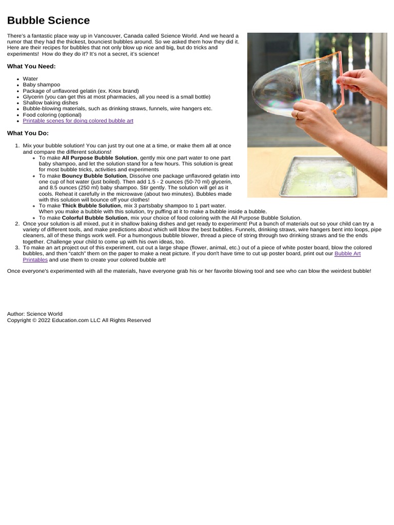 variety of different tools, and make predictions about which will blow the best bubbles. Funnels, drinking straws, wire hangers bent into loops, pipe