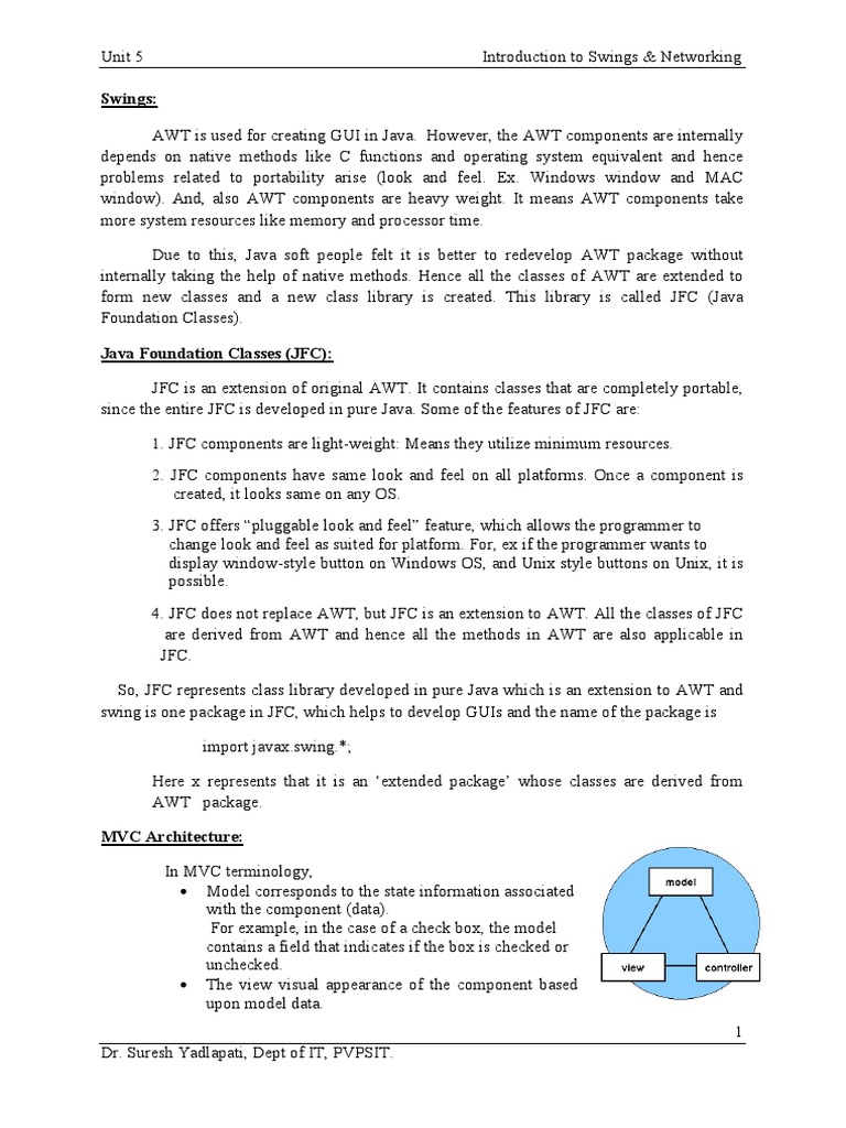 Unit 5 Introduction to Swings & Networking