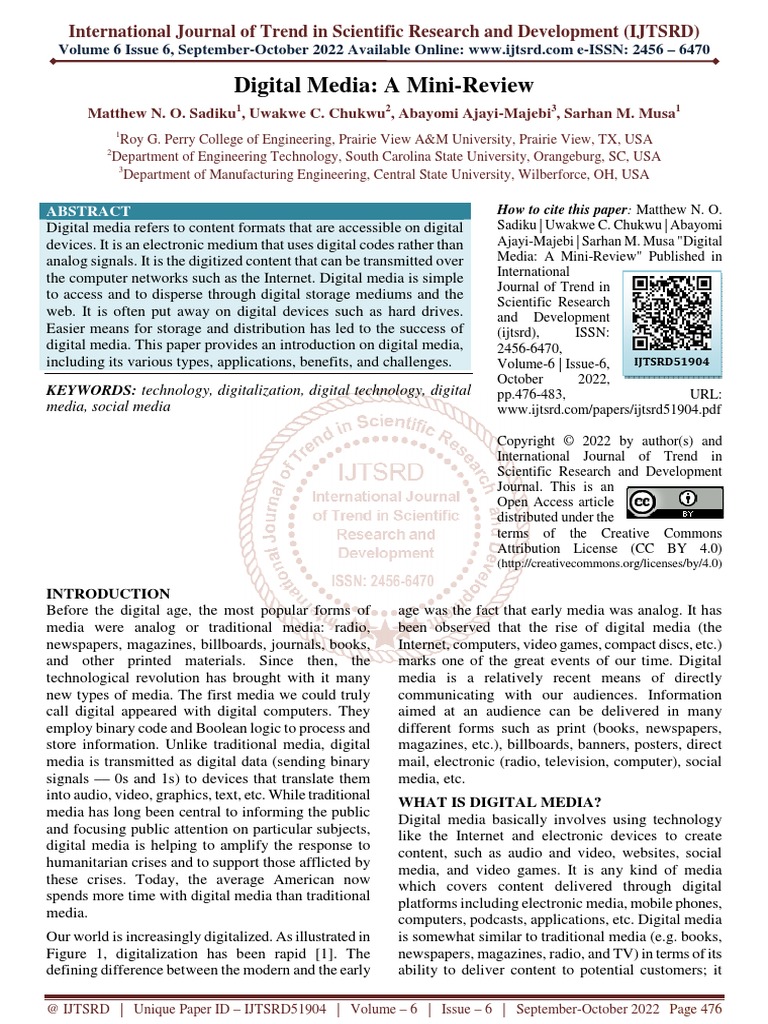 Today, digital media has become a part of our lives. It Anyone with access to computers and the Internet can