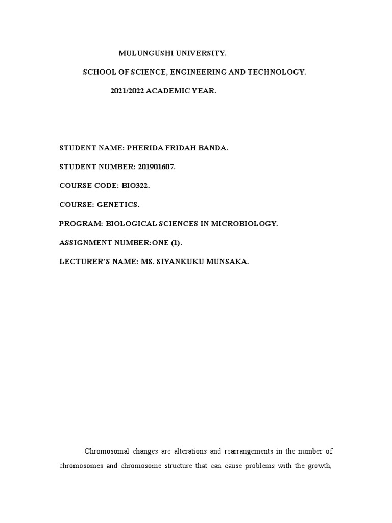 the number, size and structure of one or more chromosomes. These changes usually