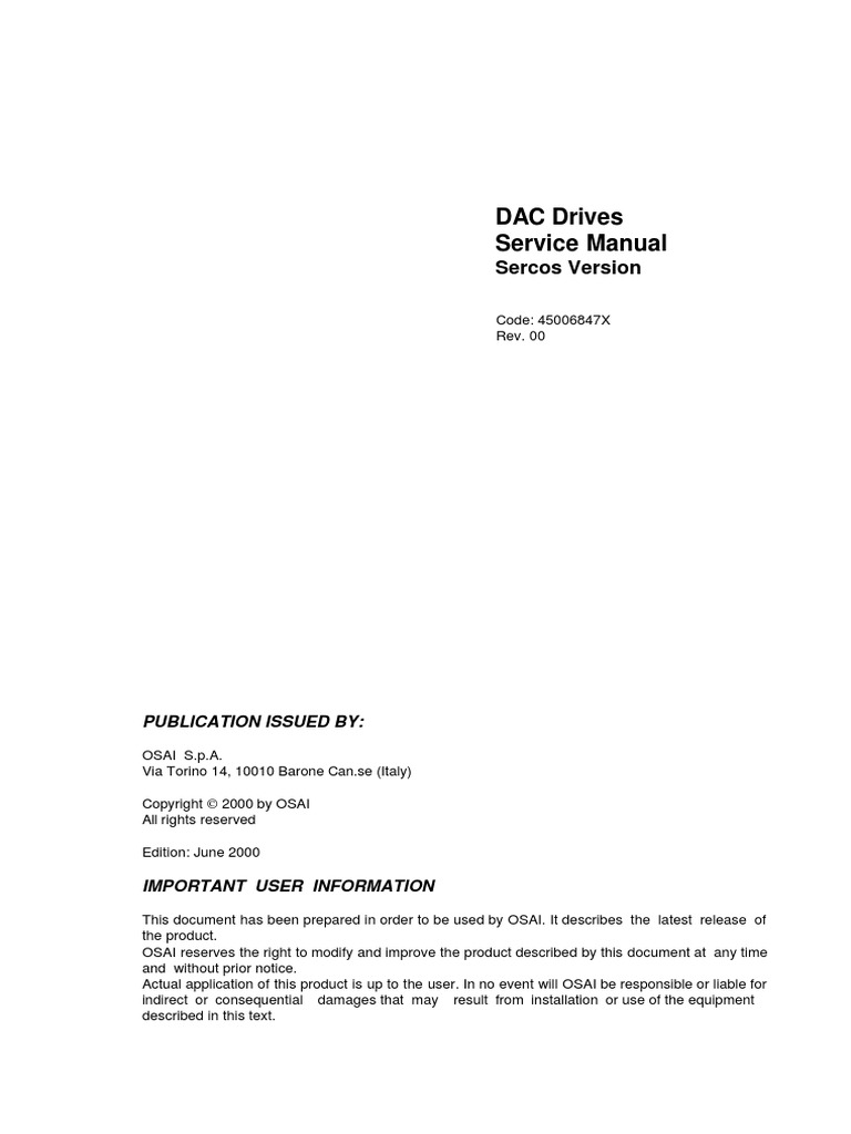 OSAI reserves the right to modify and improve the product described by this document at any time