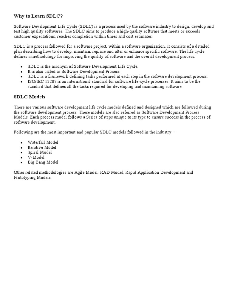Software Development Life Cycle (SDLC) is a process used by the software industry to design, develop and