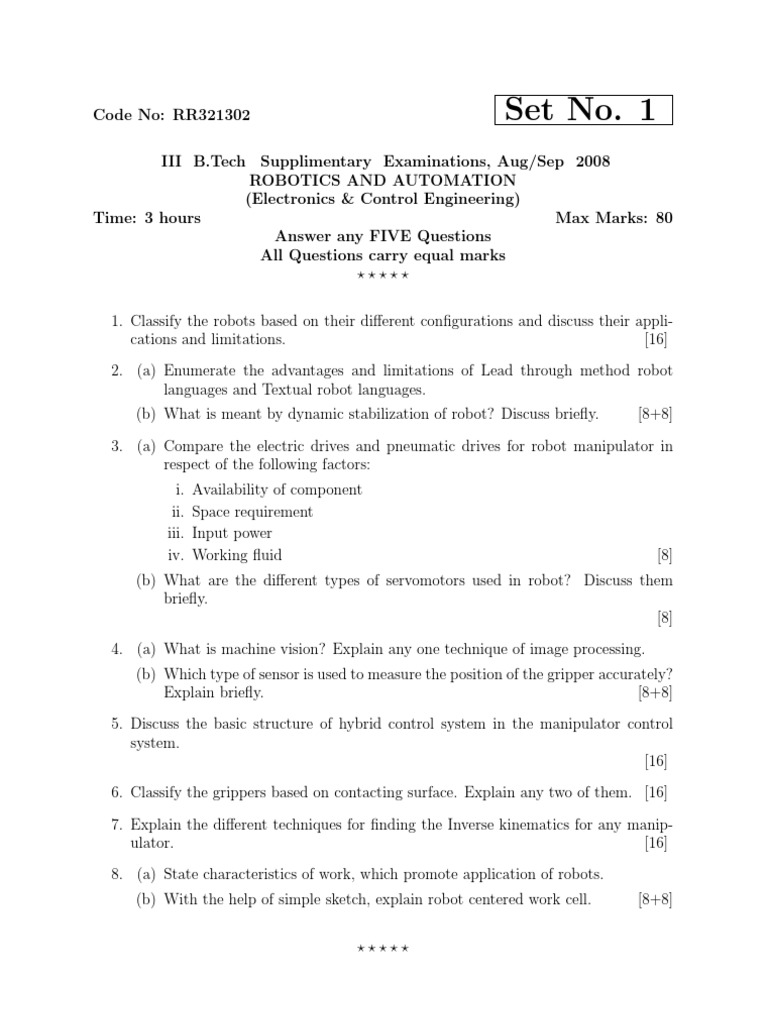 Robotics Exam for B.Tech Students