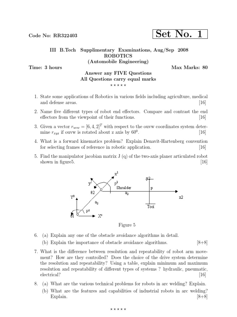 5. Find the manipulator jacobian matrix J (q) of the two-axis planer articulated robot