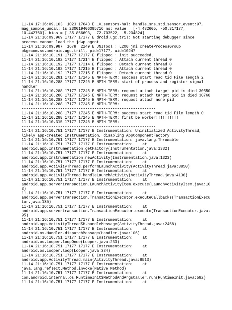 11-14 21:16:10.281 17177 17245 E NPTH-TERM: success start read tid File length 2