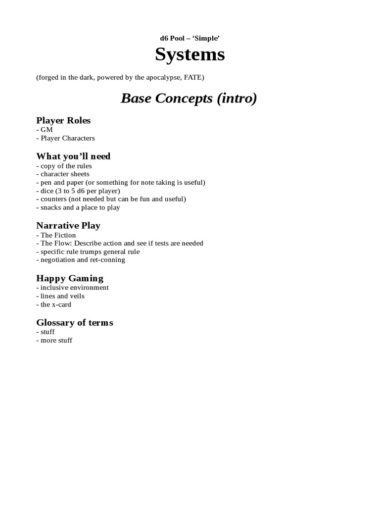 - Use a pool of d6 dice: attribute + skill + modifiers
