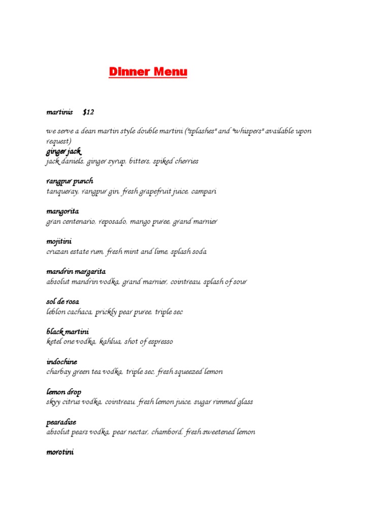 we serve a dean martin style double martini ("splashes" and "whispers" available upon