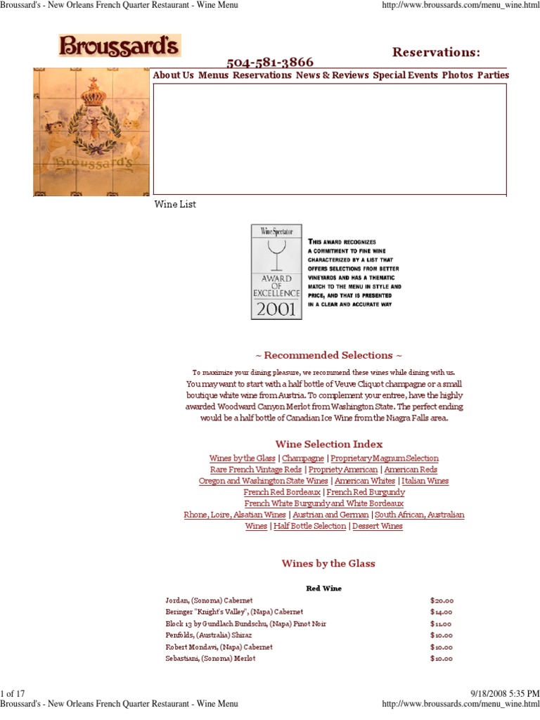 Broussard's - New Orleans French Quarter Restaurant - Wine Menu http://www.broussards.com/menu_wine.html