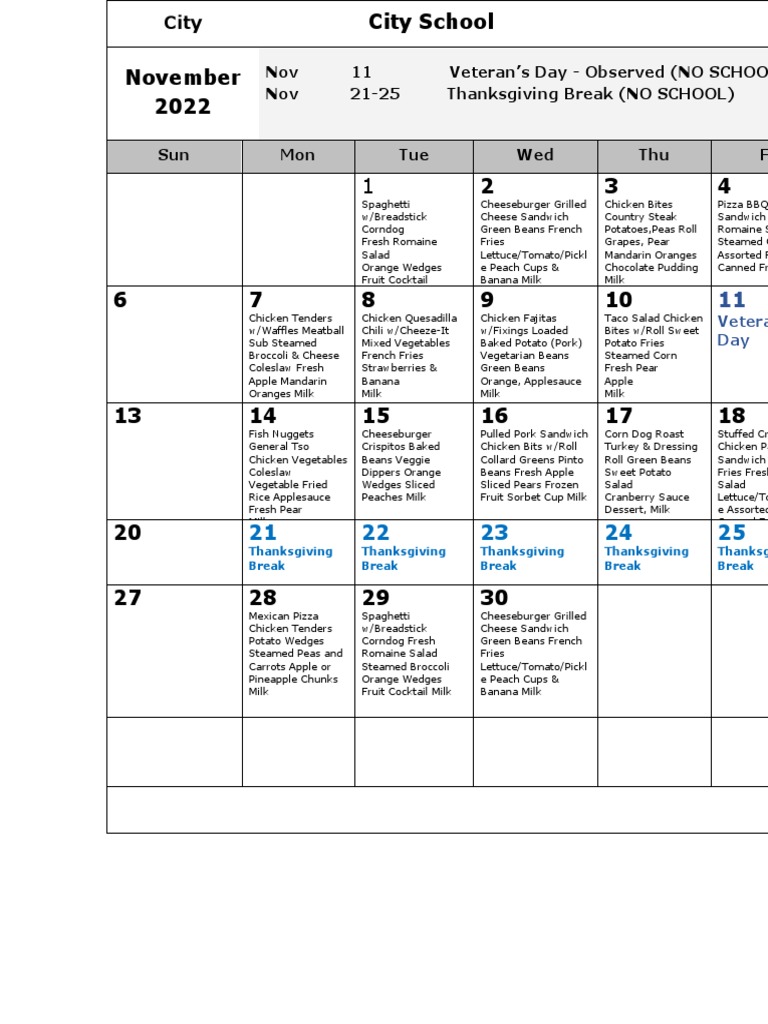 Nov 21-25 Thanksgiving Break (NO SCHOOL)