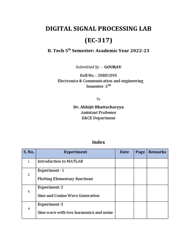 Unit Step, Unit Impulse, Ramp, Exponential, Sine and Cosine signals are